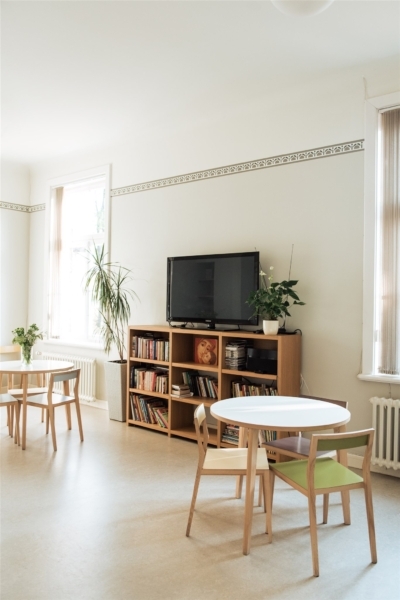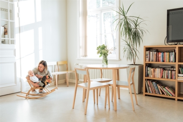 Vecāku mājā pieejamas divvietīgas un trīsvietīgas ģimenes istabas un kopējas mammu istabas palikšanai kopā ar citām mammām un atsevišķa tētu istaba